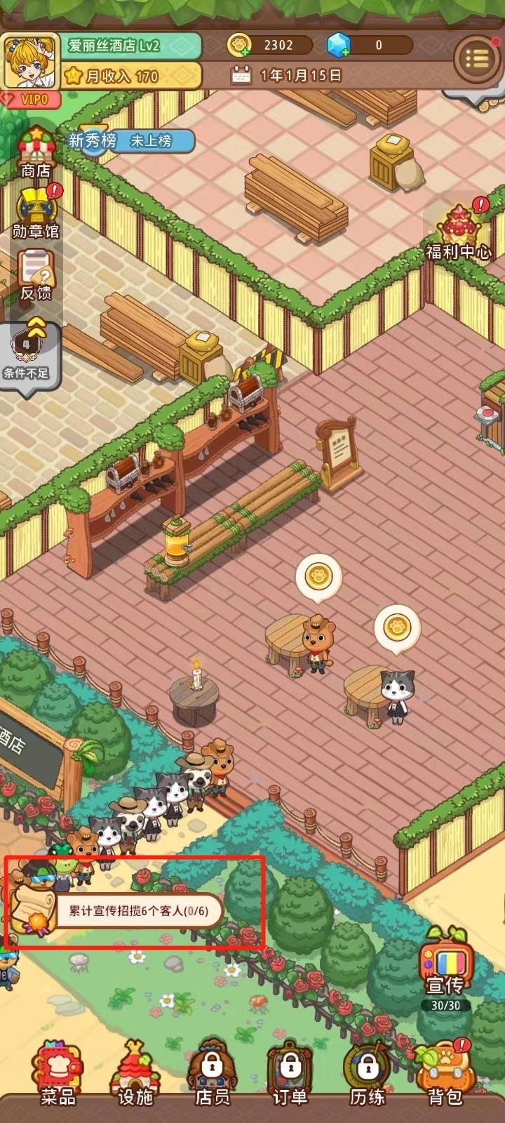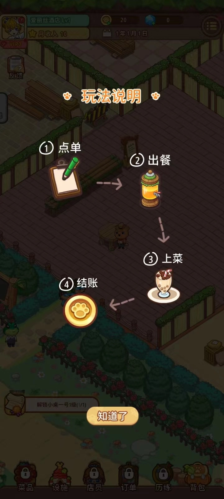 10、接下来只需依照主线任务推进就行,待店铺达到特定等级,就能解锁店员、订单以及历练等功能。