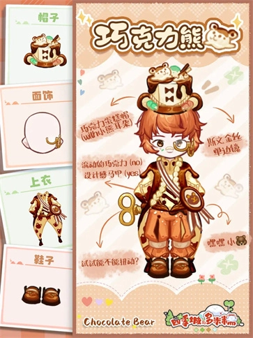 瞧瞧这巧克力小熊的耳朵、蛋糕礼帽,再看看那如同流动巧克力般的马甲,是不是仿佛有一股浓郁醇厚的香气,正朝着你扑面而来~
