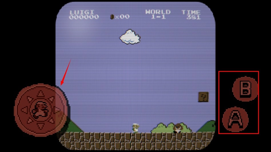 3、通过左边的摇杆可操控角色进行左右移动,按下A键能实现跳跃动作,按下B键则可使用道具。