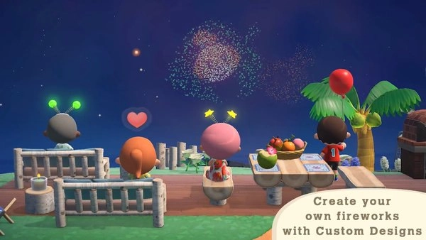 “烟火表演”——8月的每周日晚7点,玩家可观赏岛屿上空绽放的烟火,于广场还能参与抽奖,赢取各类节日用品。此外,玩家还能定制专属烟花图案,并将其放飞至空中。