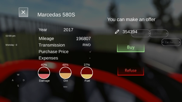 3、玩家能够选择在办公区列出待售车辆,以此出售自己的汽车,同时与客户展开谈判,从而确保达成最有利的交易。