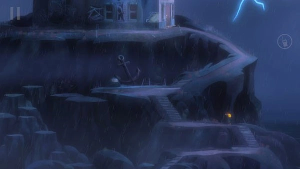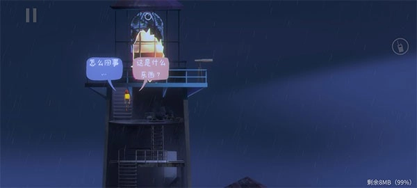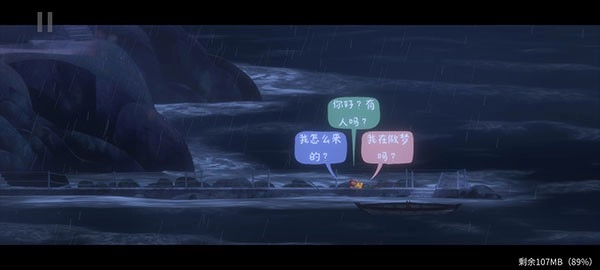 3、看过一段剧情动画后,你(莱利)在一个陌生的海口苏醒过来,点击出现的选项气泡,以此了解当下的状况。