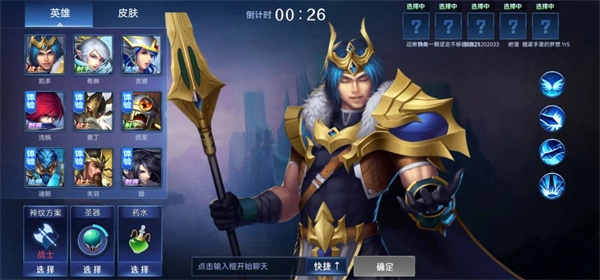 2、开启匹配,挑选一个自己要玩的英雄,英雄类型包含射手、坦克、刺客等,大家可依据自身喜好来选择。