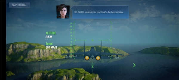 5、轻点右下角的箭头,即可开启加力燃烧室,从而大幅提升飞机的飞行速度。