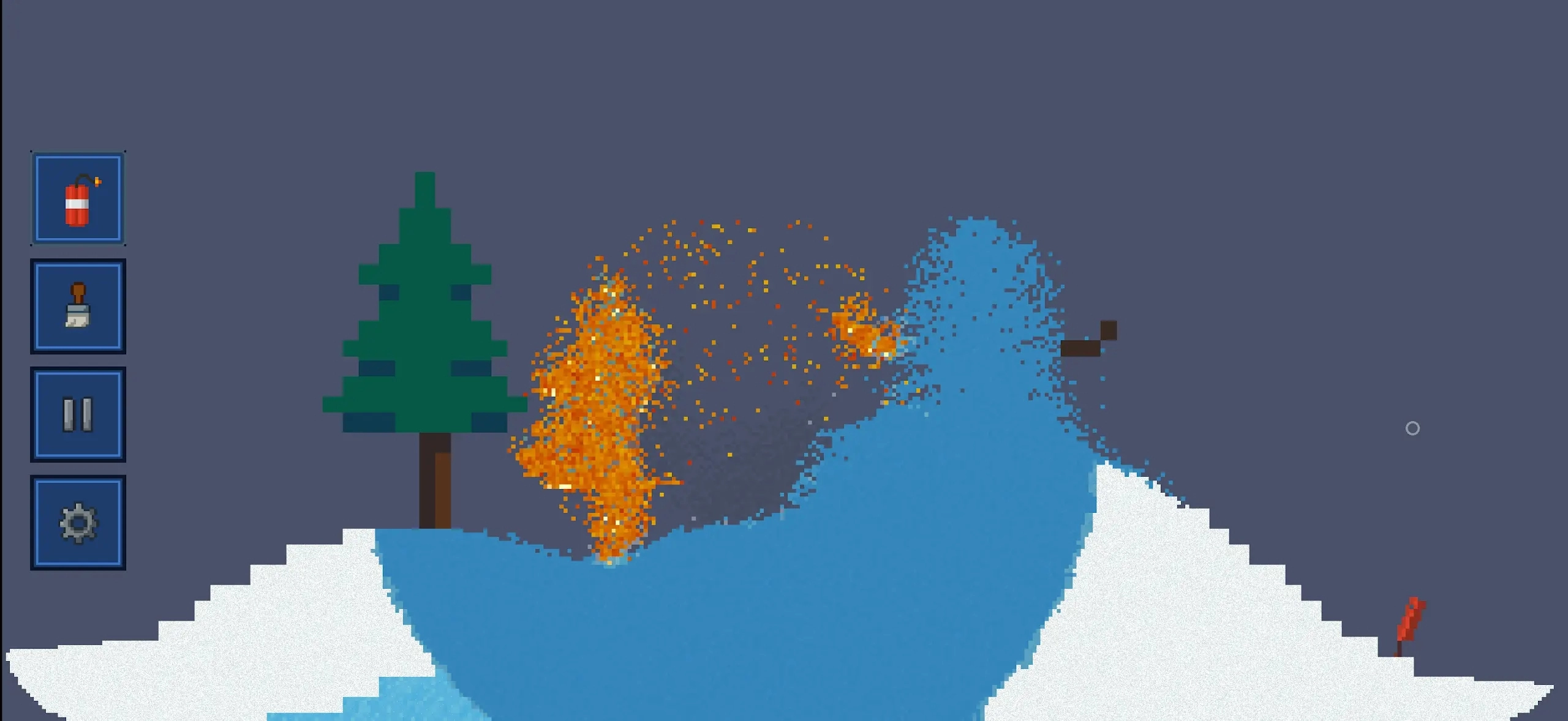 1. 元素模拟器: 包含数十种材料,呈现出液体自然流动的状态,火焰能够逐步蔓延开来,还会触发一系列连锁反应。