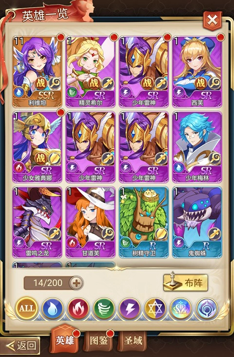 3、在英雄页面,玩家能够查看自己已获取的英雄,还能通过点击图鉴,查看那些尚未拥有的英雄。