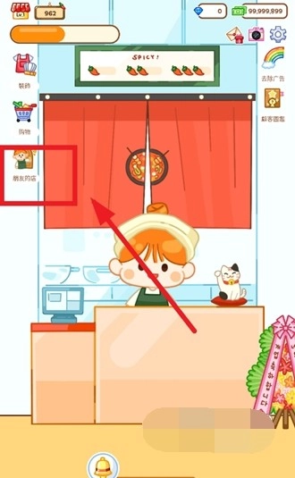 2、完成教程后,会呈现以下界面,点击左侧朋友的店铺。