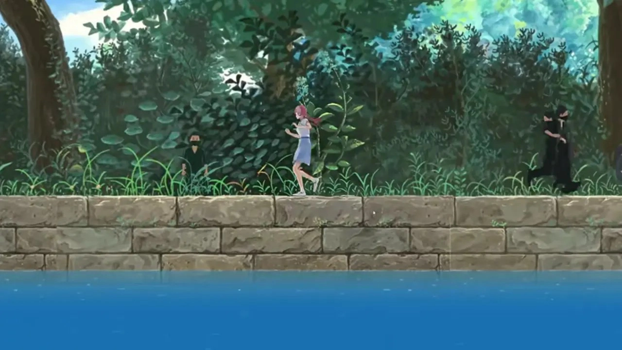 3、黑衣人会持续追击,被追上将损失一条生命,画面上方显示剩余次数。