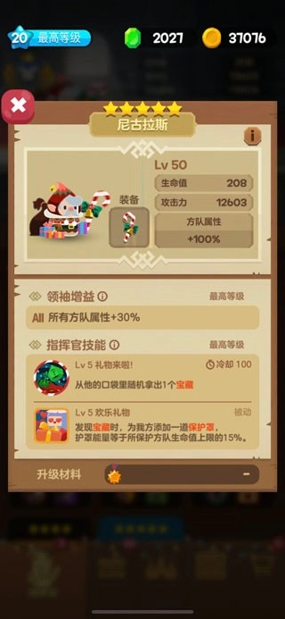 在无尽模式里,尼古拉斯简直好用到爆。这个“自带宝藏的男孩”,宝藏数量越多,整体属性就越高。