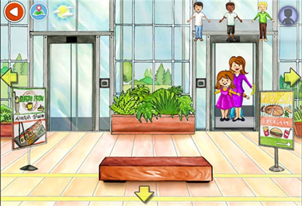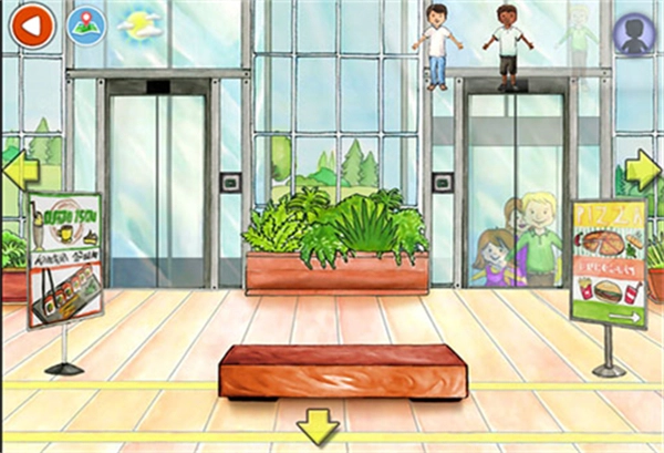1. 第一步,打开娃娃屋plus游戏,来到电梯口。如同在现实生活中,点击按钮就能打开电梯门。