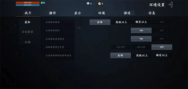 1、战斗设置