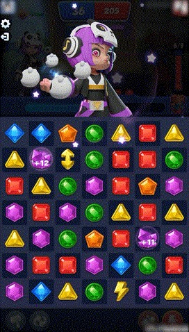 与一般普通三消对战不同的是,我们将pvp对战融入到游戏当中,作为核心玩法。每场对战都是实时匹配真人进行PK,胜利的挑战者将获得皇冠和金币奖励,失败将相应扣除,并损失一张所使用的卡片。