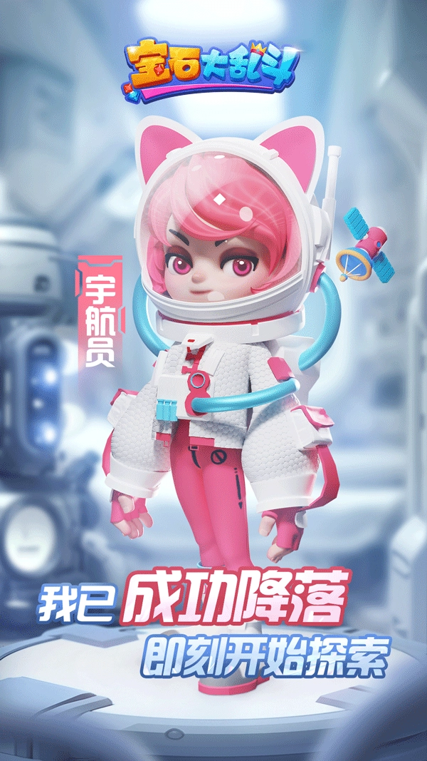 宇航员拥有自己的小飞碟,消除特殊元素后会出现小飞碟并吸走其所在列,并累计小飞碟数呈。释放技能召唤锤射炮,随机引爆一块宝石,消除其三格内所有宝石,随后所有的小飞碟会随机变为特殊元素放到棋盘上。