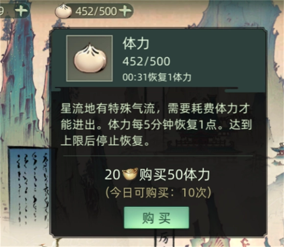 (2)元宝购买,价格随购买次数升高,因此建议购买20元宝的价格即可。20元宝=50体力