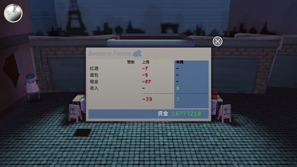 8、并且在游戏里,身为画家的你,每天的生活都有开销,像红酒、面包、租金这些,你得卖出更多画作,才能在这儿维持生计。