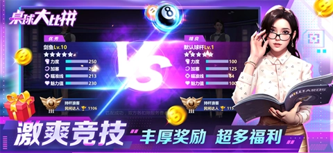 这款游戏的台球玩法趣味盎然,具备真实的3D物理模拟效果,能呈现出极为逼真的击球碰撞与弧线轨迹。不仅如此,其逼真的光影效果,让玩家仿若身临其境,尽情沉浸于精彩赛事之中,开启一场场指尖上的台球对决。