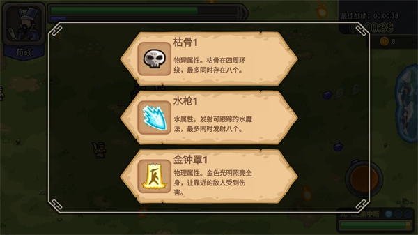 4、玩家进入游戏后,能够在游戏场景中自由移动并攻击所有敌人。成功击败敌人,玩家将获取大量经验。当玩家累计的经验足够时,就能够挑选技能来使用。
