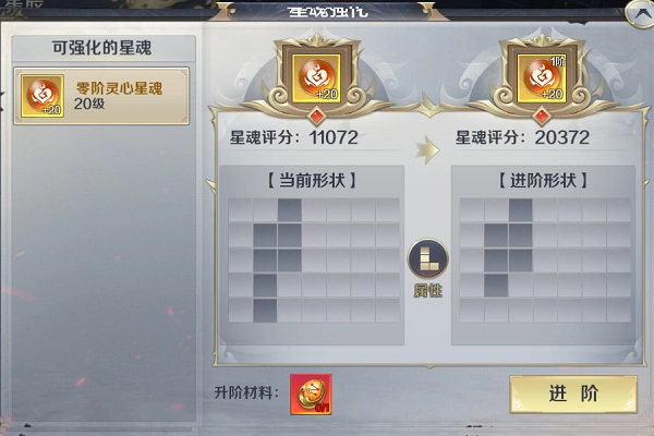可对各种星魂进行进阶操作。进阶之后,能够使星魂的体积缩小。