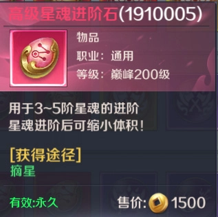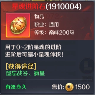 升阶所需的材料为星魂进阶石,获取途径包括遗忘战谷掉落以及摘星。