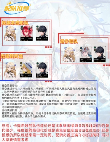 5、在配队时,夏空这一角色需格外留意,务必保证资源调配处于平衡状态,从而提升战斗效率。