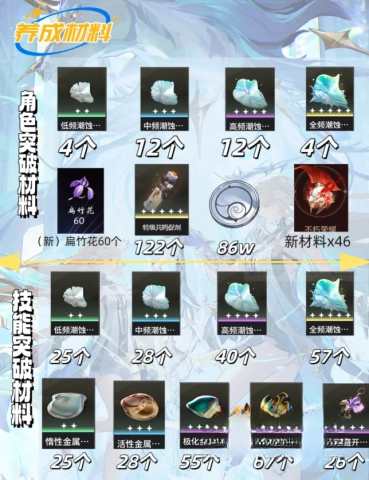 最后探讨强化产出相关内容,金色声骸强化等级上限为20级,强化所需材料也会相应增多。