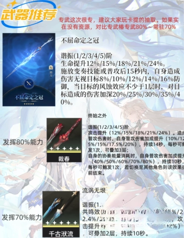 4、专属武器建议选用“不屈命定之冠”,若没有该武器,替代武器可考虑“裁春”与“千古洑流”。