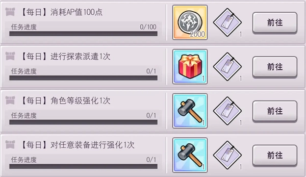 每日只要消耗100点AP,就能完成任务。建议按照主线剧情通关→参与活动副本→持续挑战活动BOSS这样的顺序进行,如此可以兑换限时奖励与道具。