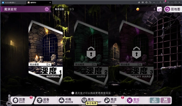 “魔渊监狱”无需等级限制,能直接进入,进入路径是主界面右下角→冒险→魔渊监狱。刚开始玩,推荐挑战Normal难度,之后再依据角色练度,选择Hard或者Very Hard。BOSS机制繁杂,新手别轻易尝试高难度等级。通关后可以开启SKIP功能,用来节省时间。