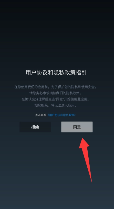 1. 点击用户协议与隐私政策指引中的同意选项。