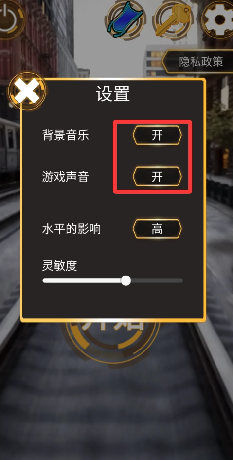 2. 进入游戏界面后,点击设置,开启声音,体验游戏。