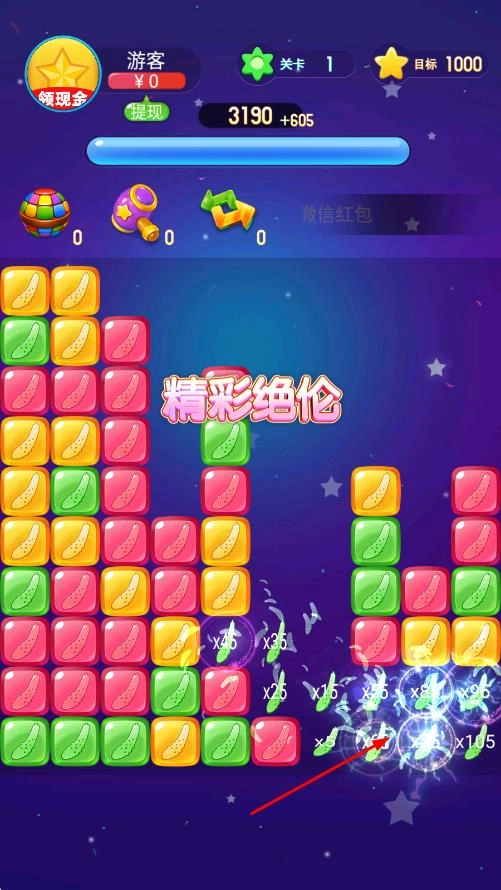 2、道具组合策略:依靠消除来积累能量,进而解锁炸弹、刷新之类的道具。合理搭配使用这些道具,能够迅速清除障碍、攻克难点关卡,有效提升闯关效率,让你收获更多成就感。