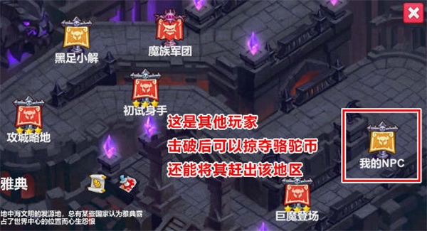 4、黄色据点属于其他玩家的领地。要是你能战胜他们,就能将其从该据点驱逐出去,进而由自己占领。