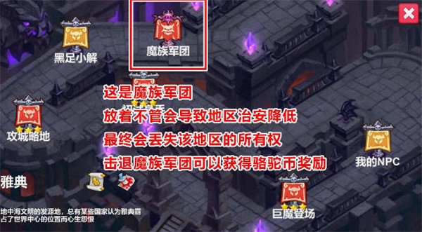 5、最后一处据点归属于魔族军团。倘若未能将其攻克,此地的治安状况便会恶化,最终你或许会丧失对这个地方的掌控。