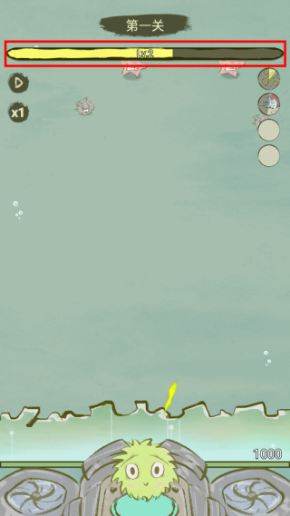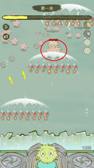 1、踏入游戏关卡后,海藻机器人β会自行向怪物发起攻击,点击图示的左上角位置。