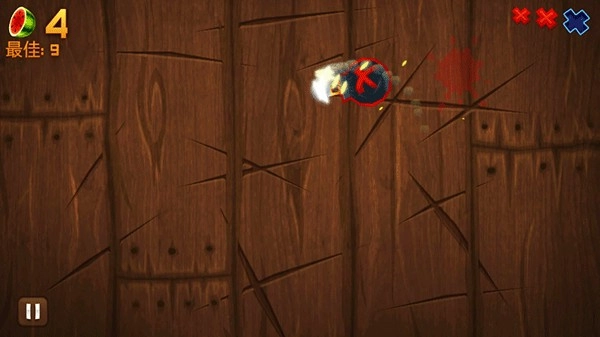 4、游戏的操作十分简便,只需用手指在屏幕上滑动就能切水果,不过要留意千万别碰到炸弹。