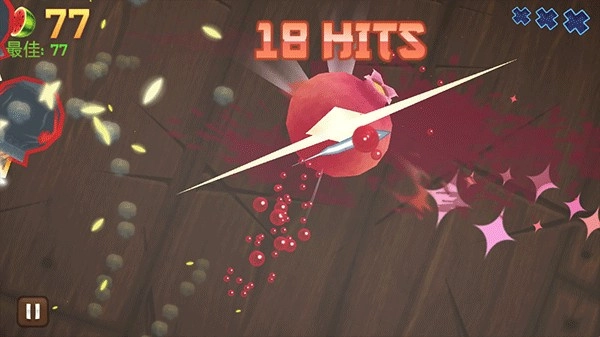 6、无需每次水果一出现就马上切,等水果聚集在一起或者排成一排的时候,一刀切下去,这样更容易拿到高连击分数。