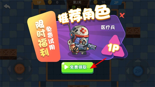 1. 在推荐角色的界面中,点击“免费领取”按钮,就能获取限时福利角色医疗兵,该角色能够为团队给予治疗支援。