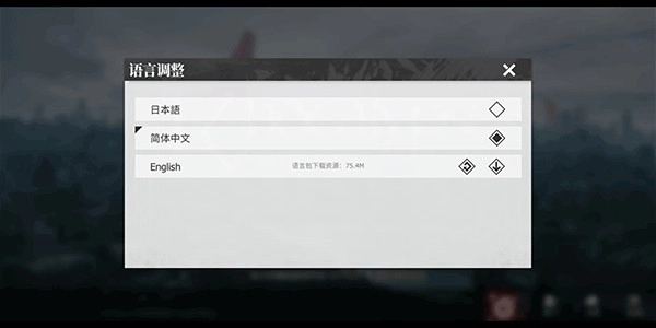 2、待资源解压完毕,游戏会自动检测当前系统语言,随后弹出如下提示,让我们在简体中文与日语中选择,此时选择简体中文就行。