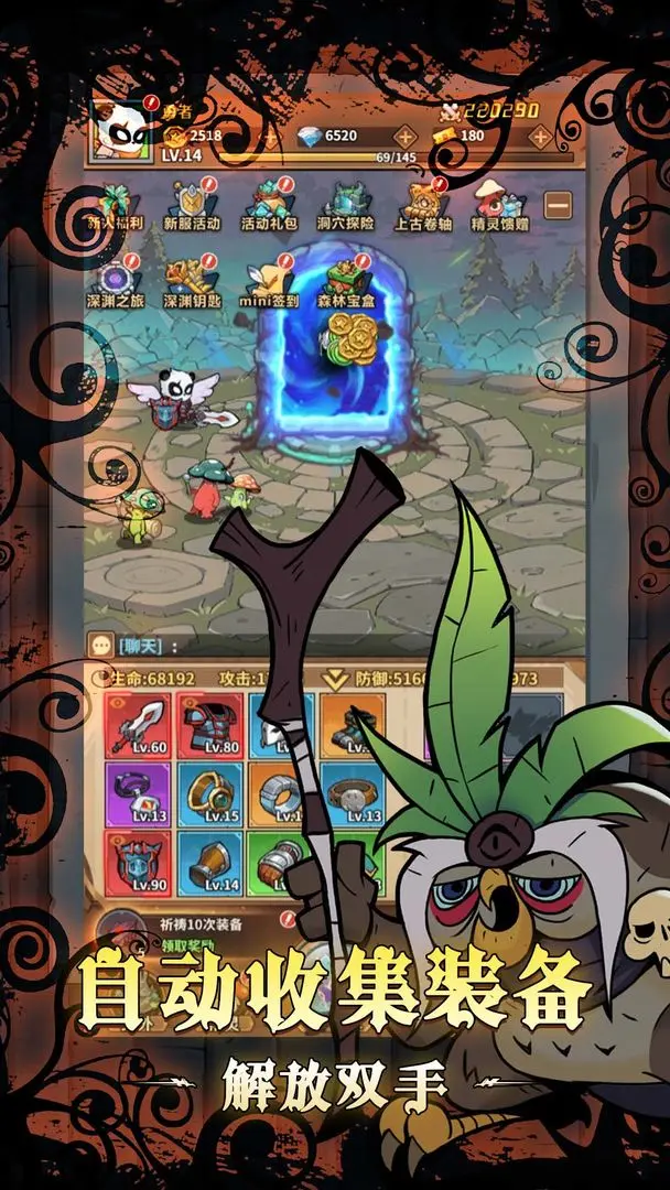 1. 开启轻松休闲的放置冒险闯关之旅,直面各类邪恶敌人的侵袭。