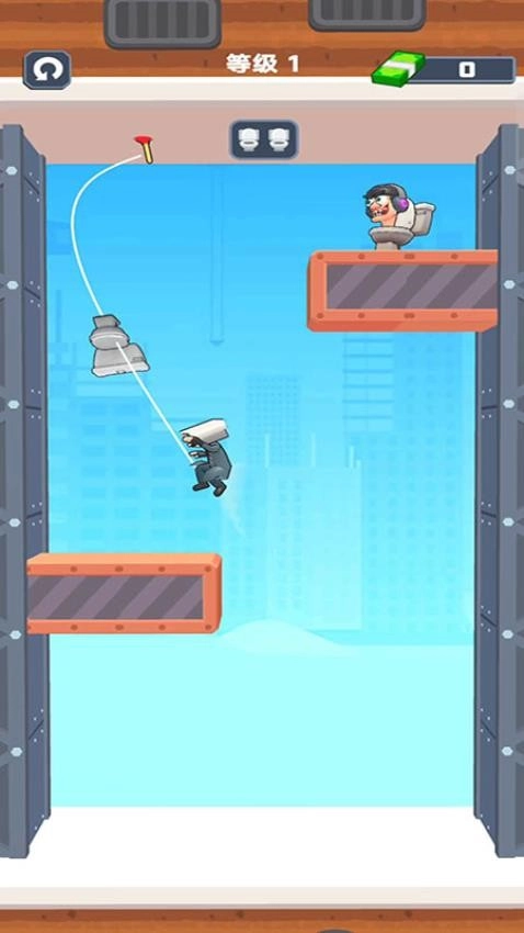 《城市怪物大作战》是一款拥有简洁清新卡通画风的动作冒险游戏。在游戏里,主角是监控人,玩家通过灵活操控这个监控角色,就能出色应对一系列挑战。哪怕面对复杂的关卡模式,也能轻松开启精彩挑战之旅。每一关都意味着截然不同的考验以及特殊要求。在行动时,玩家得集中精力操控角色,必须巧妙借助绳索,跳跃到各个平台上,消灭马桶人,才能完成关卡挑战。而且,各个关卡给出的任务要求也不尽相同。游戏中清新舒适的小人造型完美展现,所有造型形象都可依照个人喜好和想法随意更换,完全不用担心会产生视觉疲劳或枯燥之感。喜爱此类游戏的朋友,快来尝试一下吧!