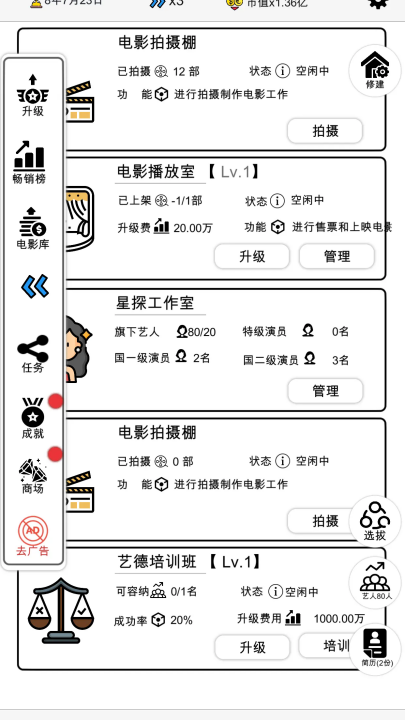 3、文字经营的玩法极为出色,各类信息直观呈现,助力你更出色地进行导演工作。