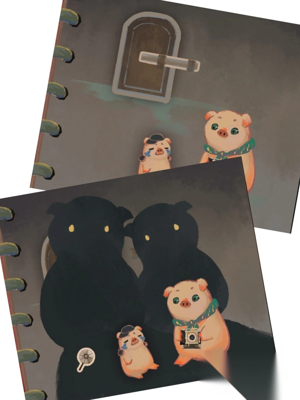 拉开门闩推开木门,打开帽子小猪旁边的箱子,取出那个暂时叫它圆盘的物件,拖到相机那里,拍下合照。
