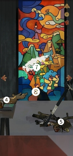 ⑨打开,翻页,火折子热成像功能。左上角的说明是玉琮的摆放顺序,按照这个顺序摆放好之后,就像p7展示的那样。