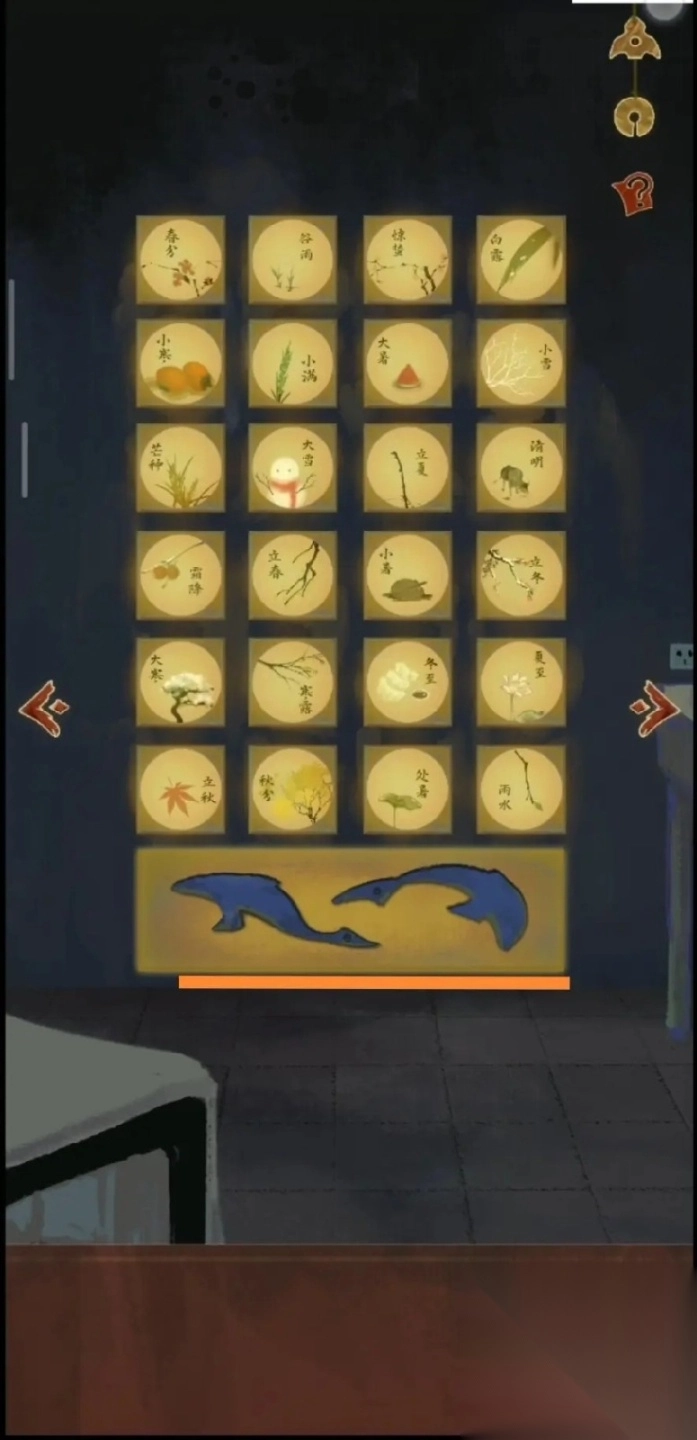补全二十四节气,按顺序点击二十四节气,点击下方形似海豚的两片指针,将其放入p9中,再点击海豚指针调整位置。