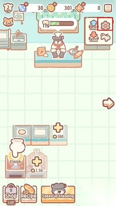 打开进入小熊面包店后,点击右上角的菜单按键。
