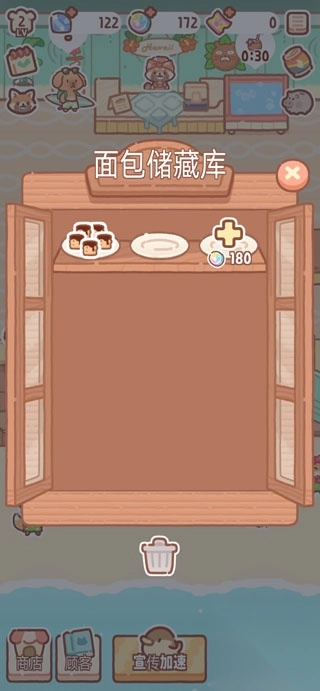 打开“面包储藏柜”,挑选已制作完成的甜点面包,点击相应选项就能完成上架销售操作。