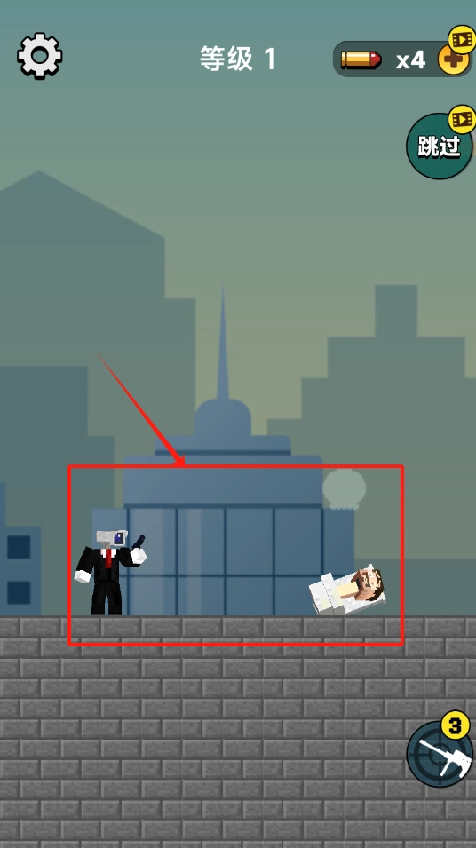 当你看到砖墙旁的角色时,点击他即可启动子弹射击敌人的功能。
