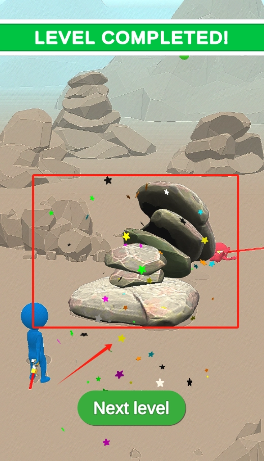 当石塔被移除后,点击绿色的“Next level”按钮,即可开启新的关卡进行挑战。