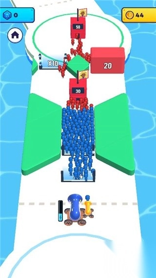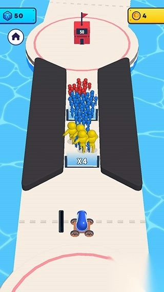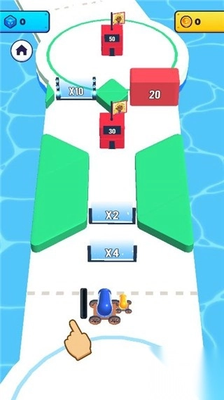 长按炮台即可持续发射炮弹人,玩家需要尽力让炮弹人穿过倍数更高的数字门。