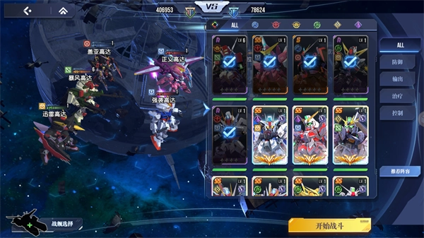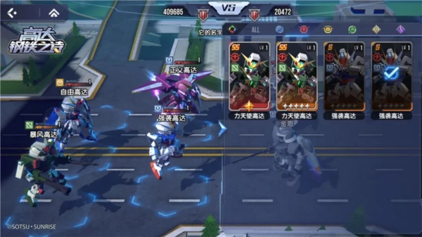 最后一个位置可以用【迅雷高达】或者其他【输出机体】来补强队伍的输出伤害能力,这样一套战力最大化的初期阵容就成型了。